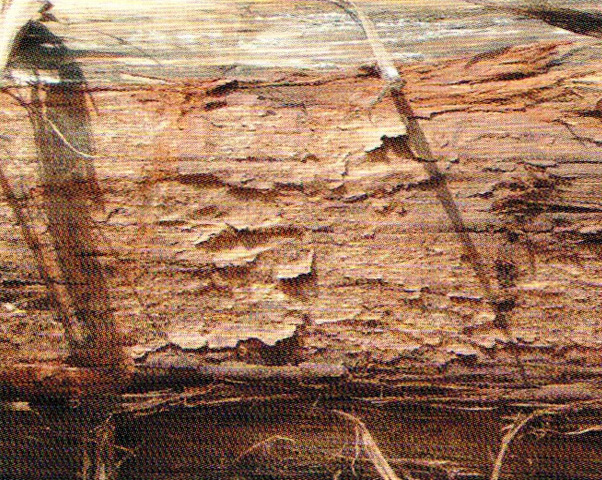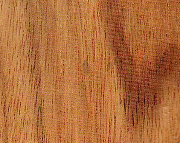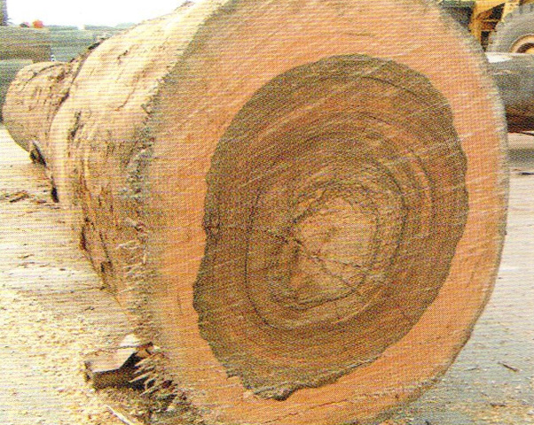 心边材区别明显。心材暗褐色,常带有深褐色至黑色同心圆状的条纹,略似核桃木。边材很宽,灰黄色或浅玫瑰色,宽可达20cm以上。生长轮略明显、较均匀。