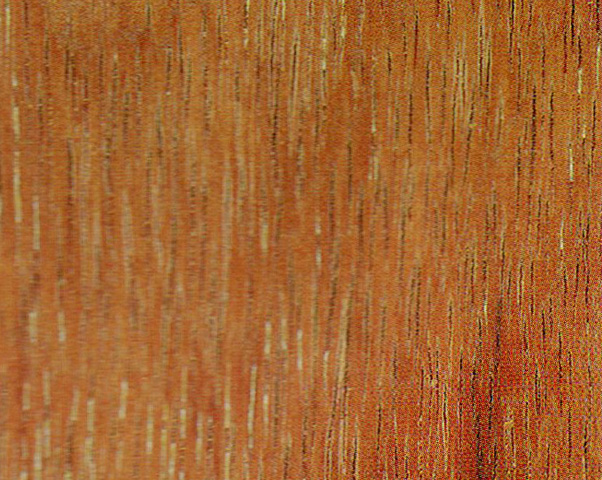 心边材区别极明显、心材暗红褐色,略具深色条纹、边材淡黄白色,厚3~4 cm。生长轮略明显。