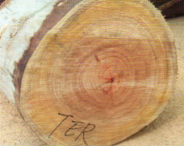 心边材区别略明显。心材红褐色至浅褐色,有时带浅黄色调。边材色稍浅。生长轮略明显。